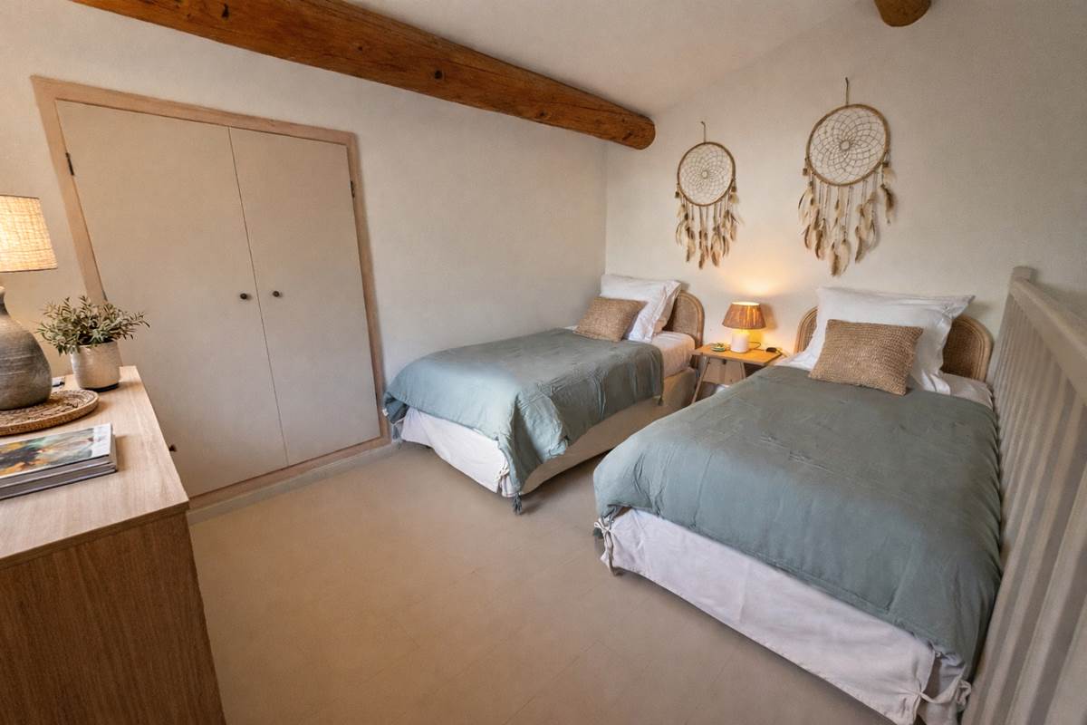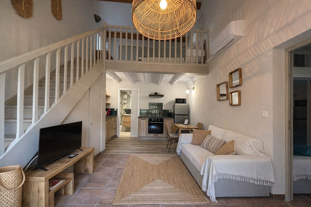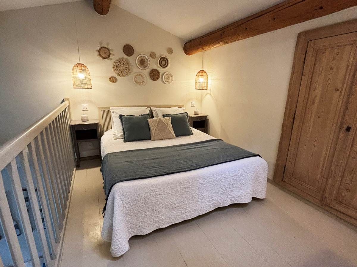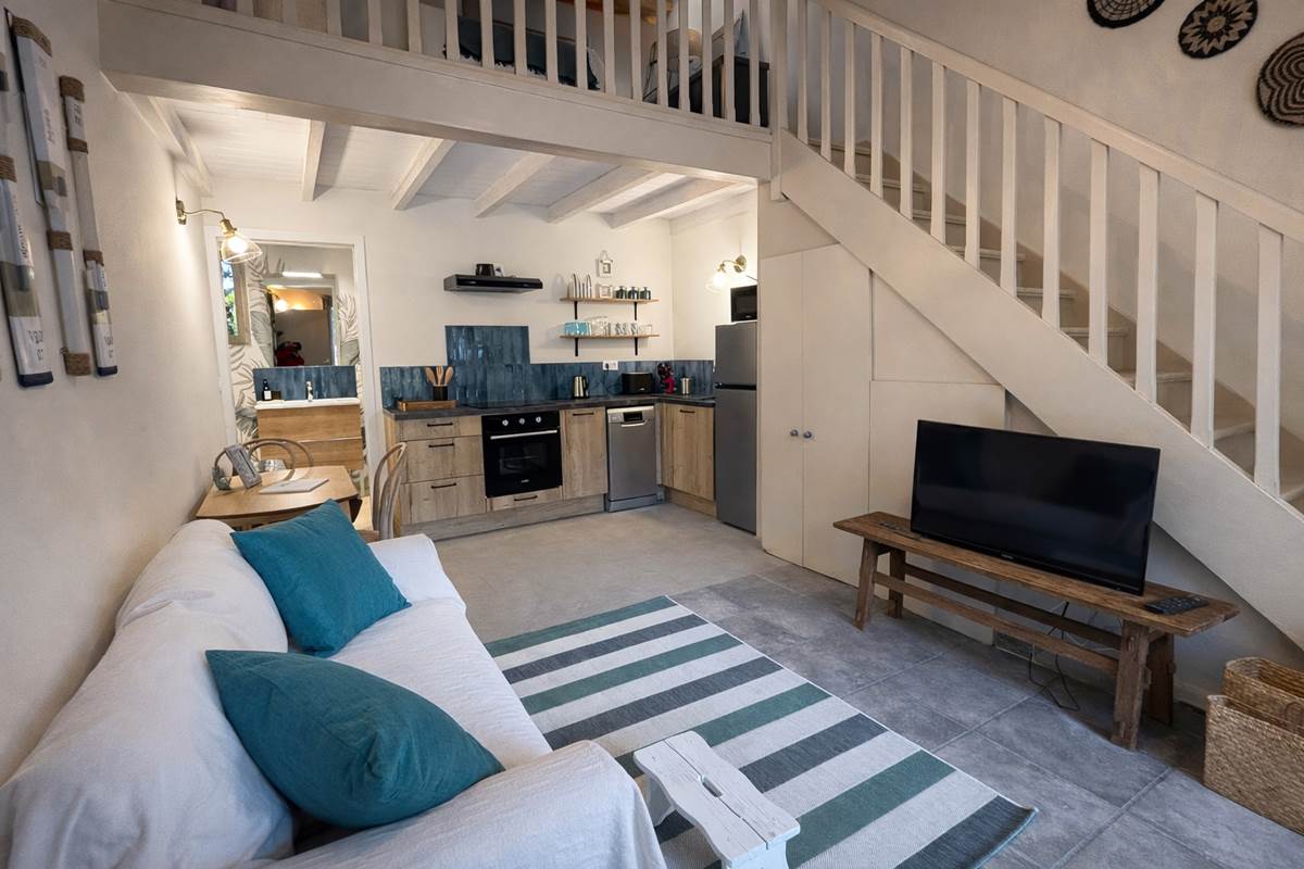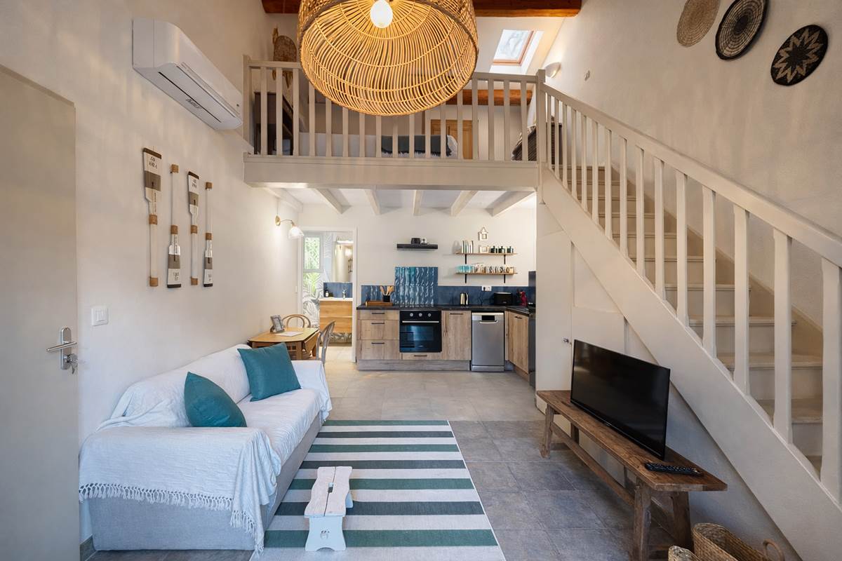 Dieses große Ferienhaus, ideal für eine Familie oder eine Gruppe von Freunden , heißt Sie mit seinen zwei Schlafzimmern im Zwischengeschoss, einer umschaltbaren Klimaanlage und einer warmen Atmosphäre willkommen. Es ist komplett ausgestattet und verfügt über eine moderne Küche , Geschirrspüler, Waschmaschine, Elektroherd, Mikrowelle, Kühlschrank, Kaffeemaschine und Wasserkocher.